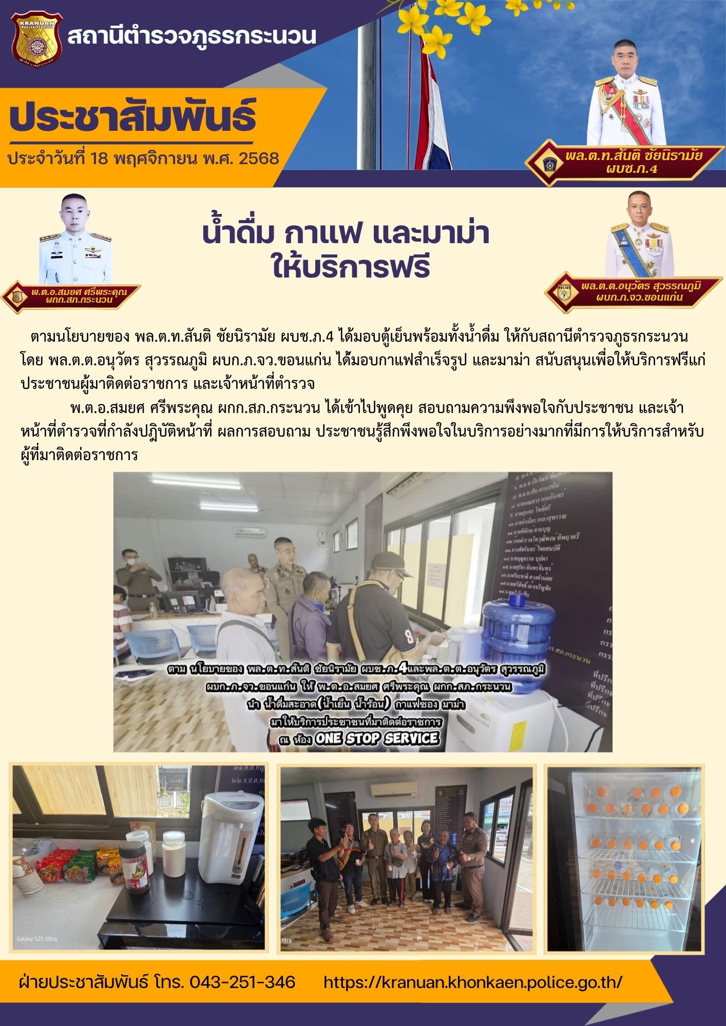 วันนี้ 5 พ.ย. 68 เวลา 16.30 น. พ.ต.อ.สมยศ ศรีพระคุณ ผกก.สภ.กระนวน พ.ต.ท.กันตินันท์ สงครามยศ รอง ผกก.