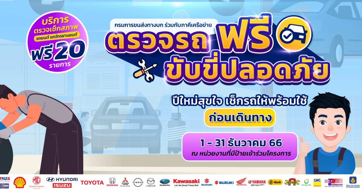 กรมการขนส่งทางบก ร่วมกับหน่วยงานภาครัฐและเอกชน ตรวจรถฟรี ขับขี่ปลอดภัย เช็กรถให้พร้อมใช้ก่อนเดินทาง ตลอดเดือนธันวาคม 2566