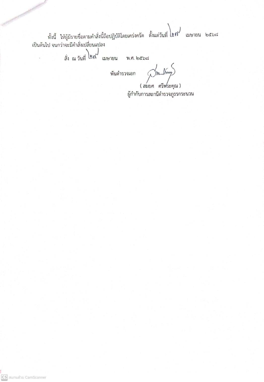 คำสั่งปฏิบัติหน้าที่ 29 เมษายน 2568 โดย thanaysawan srilapat / งานอำนวยการเดือนเมษายน FacebookFacebookXTwitterLINELine