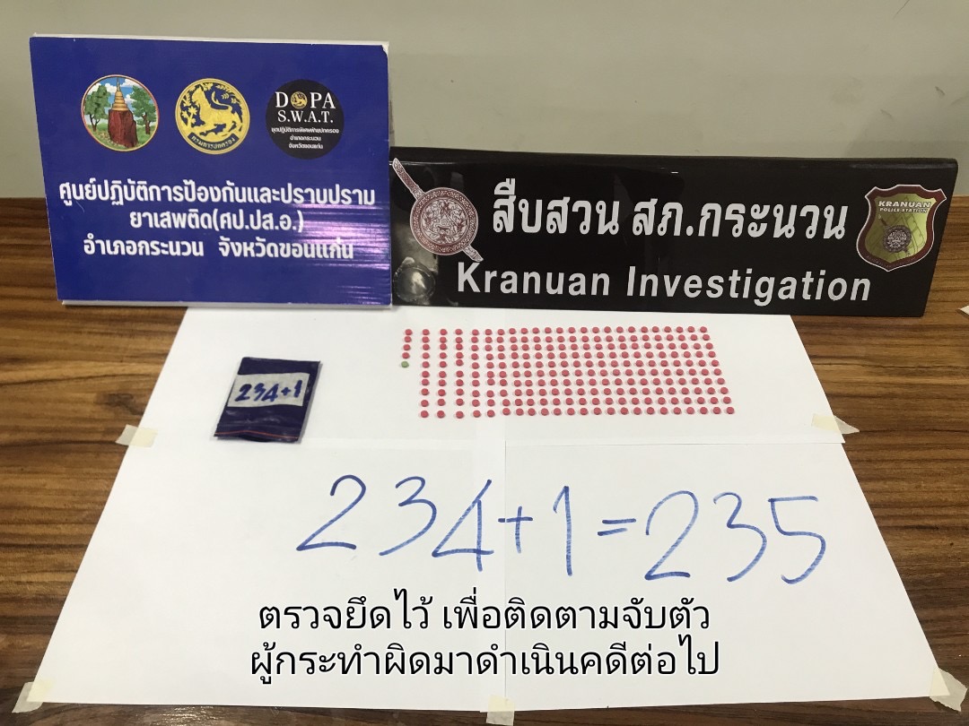 เล่นการพนัน(สล็อต) จำนวน 1 ราย ผู้ต้องหา จำนวน 1 คน และได้ตรวจยึดยาบ้า จำนวน 235 เม็ด ไว้เพื่อติดตามเจ้าของมาดำเนิน