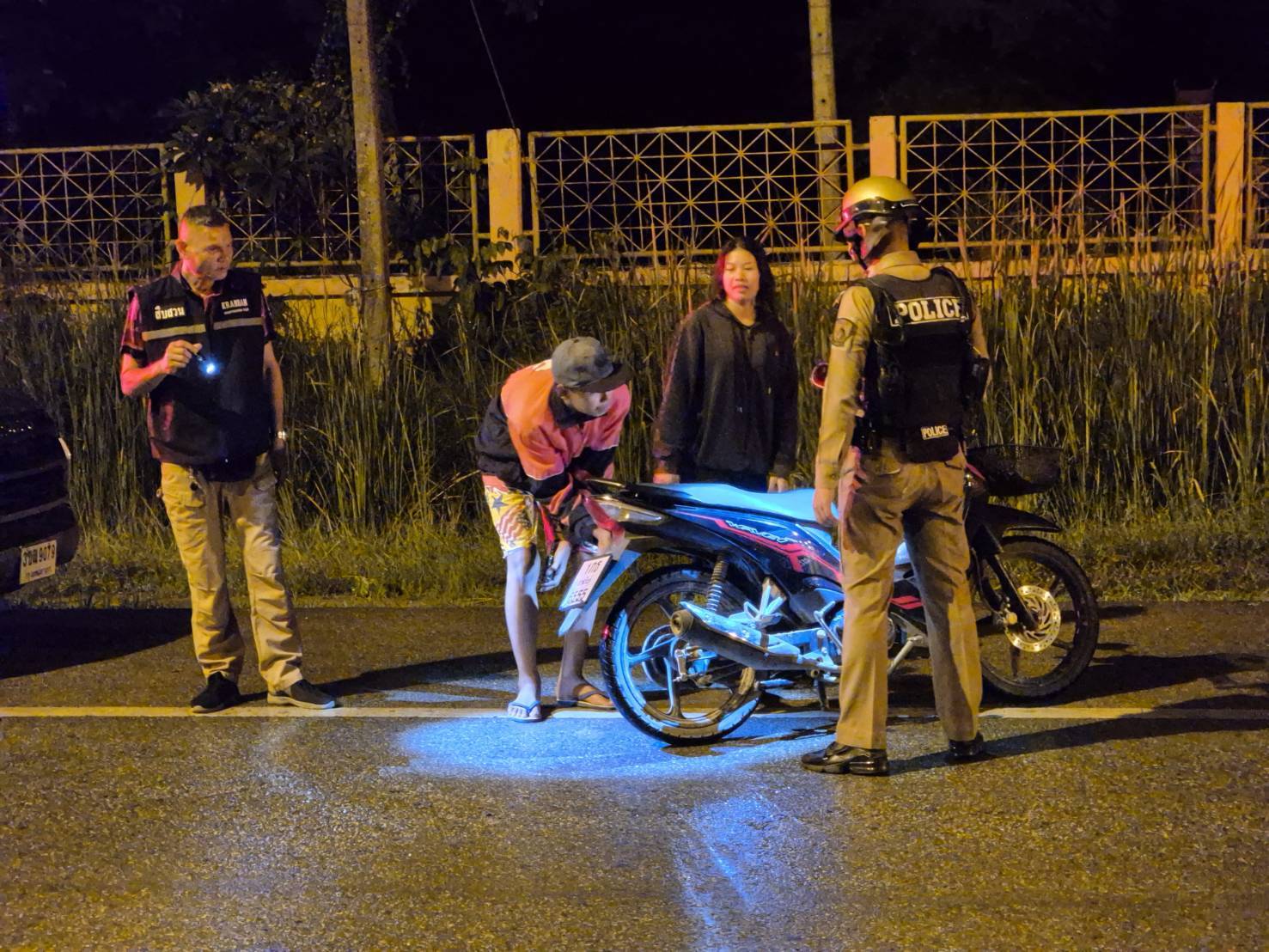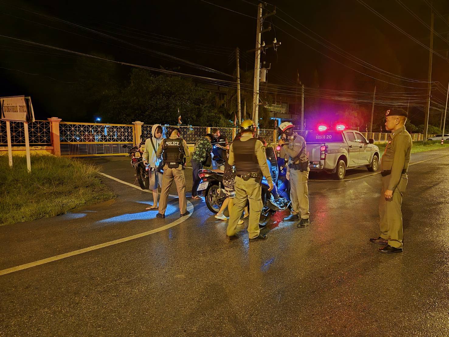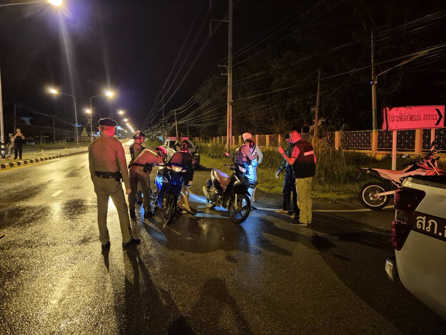 พ.ต.ท.กันตินันท์ สงครามยศ รอง ผกก.ป.สภ.กระนวน หัวหน้าจุดตรวจ นำกำลังพลออกตั้งจุดตรวจ เวลา 22.00 น. – 24.00 น.