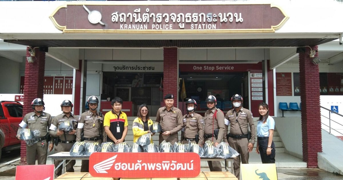 สภ.กระนวน ขอขอบคุณ พรพิวัฒน์ยานยนต์ ศูนย์มอไซค์ฮอนด้า สาขากระนวน ที่ให้การสนับสนุนและเล็งเห็นถึงความสำคัญด้านความปลอดภัยทางถนน โดย สภ.กระนวน จะมอบหมวกนิรภัยให้อำเภอกระนวน ในโครงการ “ผ้าป่าหมวกกันน็อค ขับขี่ปลอดภัย 365 วัน” เพื่อนำไปมอบให้กับประชาชน นักเรียน นักศึกษา ที่ขาดแคลนในพื้นที่อำเภอกระนวน เพื่อให้บรรลุตามวัตถุประสงค์ของโครงการฯ ต่อไป