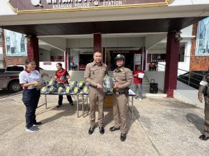 ตรวจเครื่องแต่งกายและได้มอบหมวกกันน็อคแก่ข้าราชการตำรวจ สภ.กระนวน