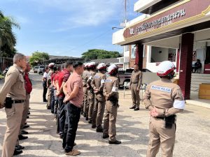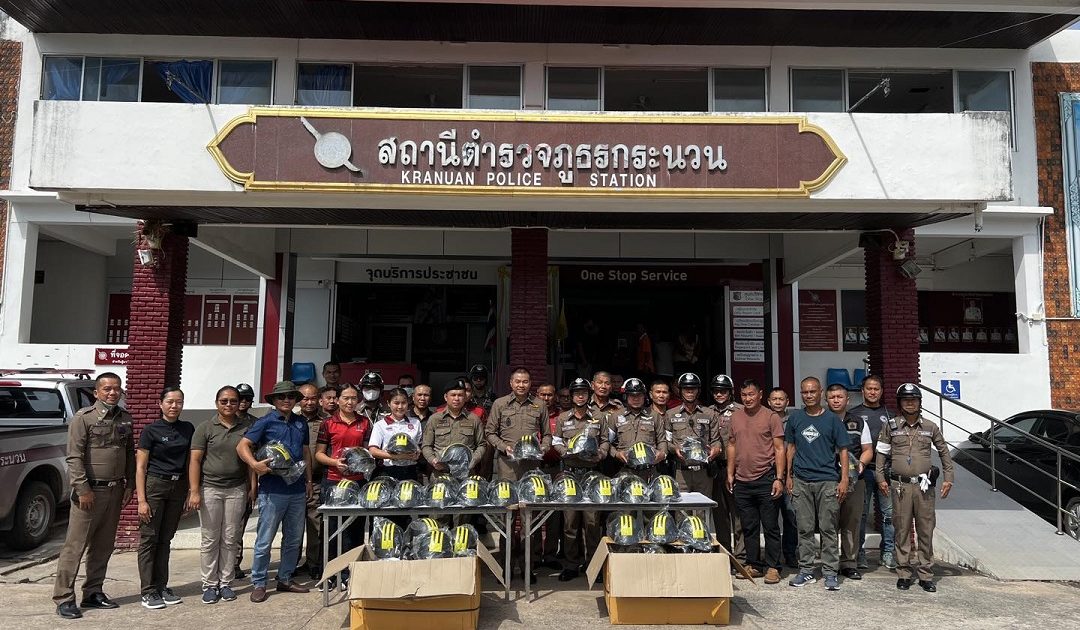 ตรวจเครื่องแต่งกายและได้มอบหมวกกันน็อคแก่ข้าราชการตำรวจ สภ.กระนวน