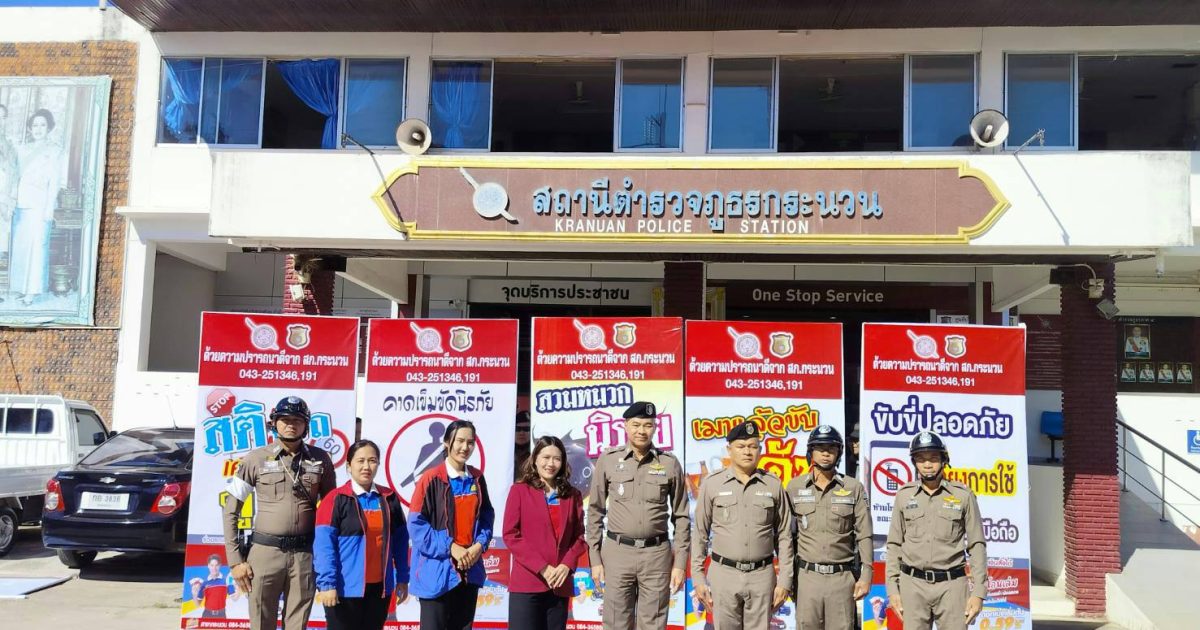 เมื่อวันที่ 21 ธ.ค.66 เวลา 10.00 น. พ.ต.อ.ประศาสตร์ แน่นอุดร ผกก.สภ.กระนวน พร้อมด้วยชุดจราจร สภ.กระนวน รับมอบป้ายรณรงค์การป้องกันอุบัติเหตุจากบริษัทสมหวัง เงินสั่งได้ สาขากระนวน สำหรับรณรงค์และประชาสัมพันธ์ให้ประชาชนเกิดการรับรู้ เคารพกฎจราจร และมีจิตสำนึกที่ดีร่วมกันในการใช้รถใช้ถนน เพื่อป้องกันและลดการเกิดอุบัติเหตุบนท้องถนนในช่วงเทศกาลปีใหม่ พ.ศ.2567