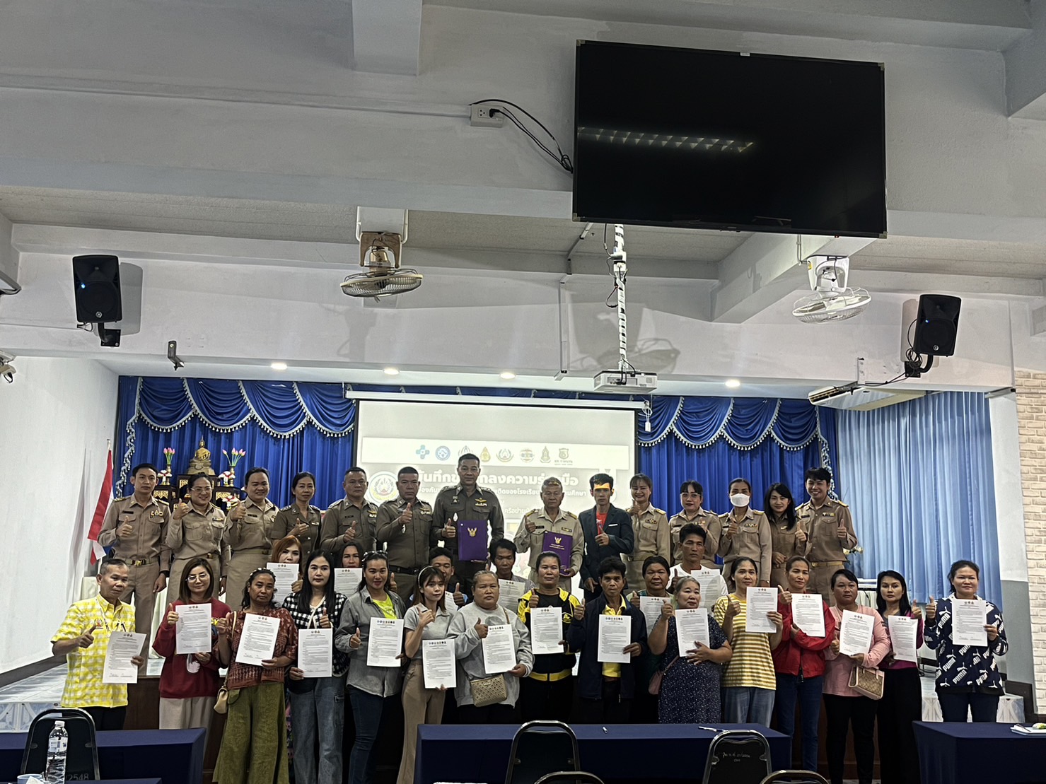 เมื่อวันที่ 8 ม.ค. 67 เวลา 09.00 น. พ.ต.อ.ประศาสตร์ แน่นอุดร ผกก.สภ.กระนวน พร้อมด้วย พ.ต.ท.ปิยวัฒน์ พิมพ์เพ็ง สวป.สภ.กระนวน พ.ต.ต.สุวัฒน์ กันยาคำ สวป.(ชส.) สภ.กระนวน และชุด ชมส.สภ.กระนวน ร่วมพิธีลงนามในบันทึกข้อตกลงความร่วมมือ (MOU) การป้องกันและแก้ไขปัญหายาเสพติดของโรงเรียนทุ่งใหญ่รัตนศึกษา ร่วมกับภาคีเครือข่าย ณ ห้องโสตทัศนศึกษา โรงเรียนทุ่งใหญ่รัตนศึกษา