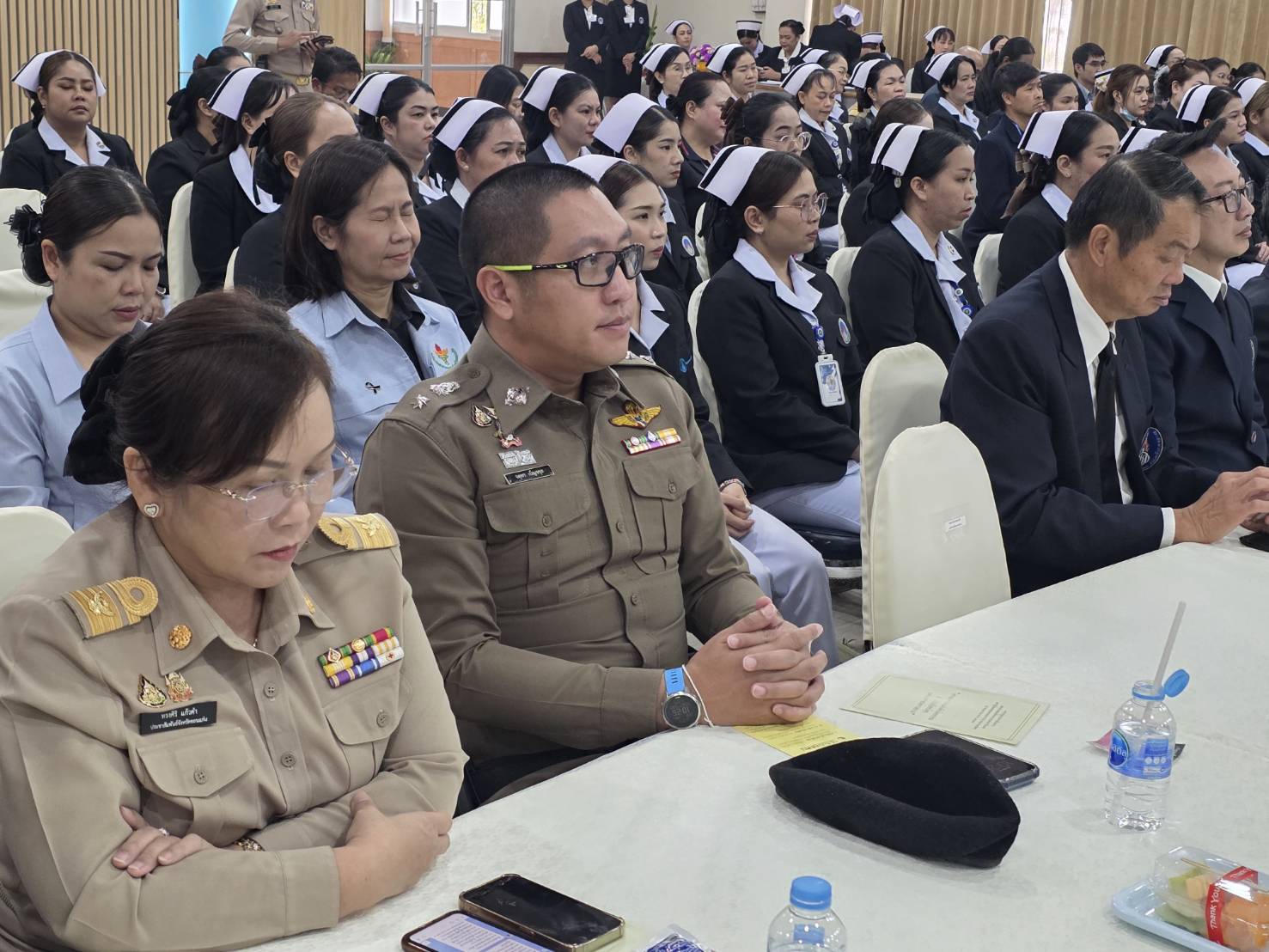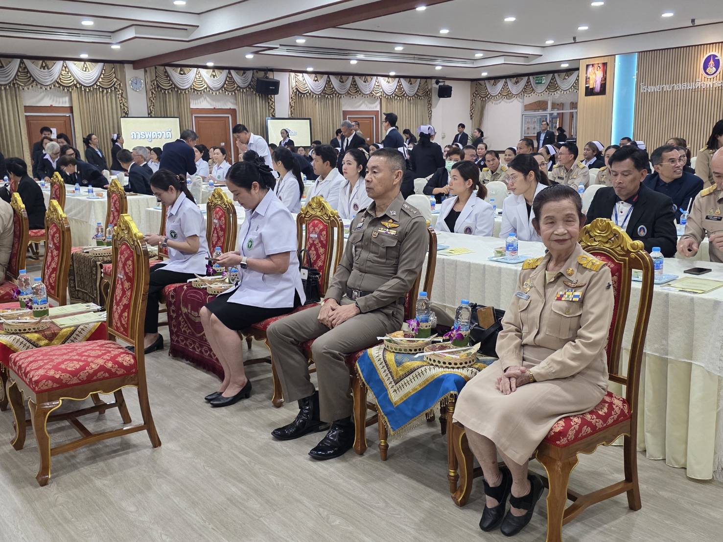 รอง ผกก.สส.สภ.กระนวน เเละหัวหน้าส่วนราชการในอำเภอกระนวน และบุคลากรของ โรงพยาบาล ให้การต้อนรับและเข้าฟังการบรรยายพิเศษเชิงปฏิบัติการ