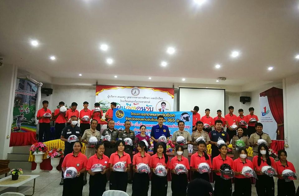 เมื่อวันที่ 13 ธ.ค.66 เวลา 13.30 น. นายธนากร ชลพันธ์ ปลัดอำเภอฝ่ายอำนวยความเป็นธรรม พ.ต.อ.ประศาสตร์ แน่นอุดร ผกก.สภ.กระนวน พ.ต.ท.คณิศร อัคราช รอง ผกก.(ป.) สภ.กระนวน พ.ต.ท.ปิยวัฒน์ พิมพ์เพ็ง สวป.สภ.กระนวน ฝ่ายปกครอง เจ้าหน้าที่ส่วนเกี่ยวข้อง พร้อมด้วยชุดจราจร สภ.กระนวน มอบหมวกนิรภัย จำนวน 57 ใบ แก่นักเรียนโรงเรียนหนองโนประชาสรรค์