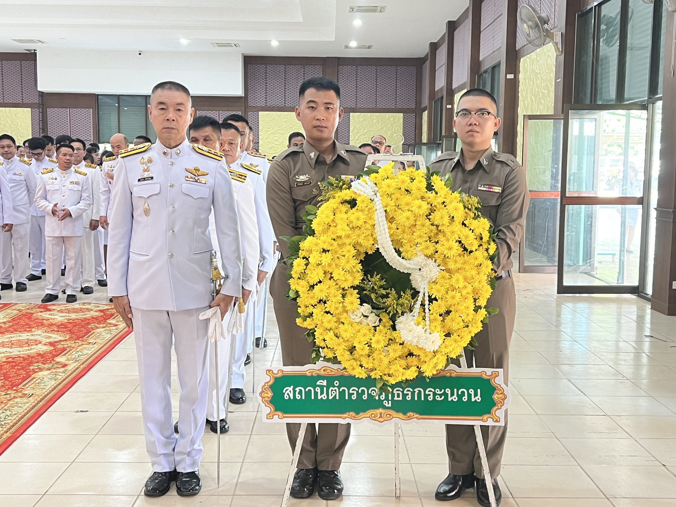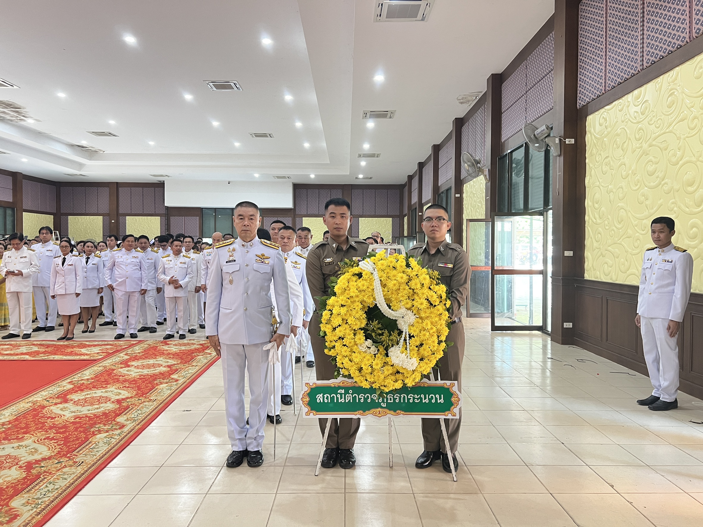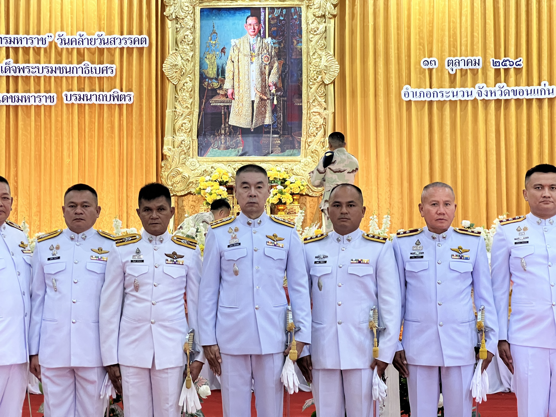 พ.ต.อ.สมยศ ศรีพระคุณ ผกก.สภ.กระนวน ร่วมพิธีทำบุญตักบาตรและวางพวงมาลาเพื่อรำลึกในพระมหากรุณาธิคุณ เนื่องในวันนวมินทรมหาราช วันคล้ายวันสวรรคตของพระบาทสมเด็จพระบรมชนกาธิเบศร มหาภูมิพลอดุลยเดชมหาราช บรมนาถบพิตร 13 ต.ค. 2568