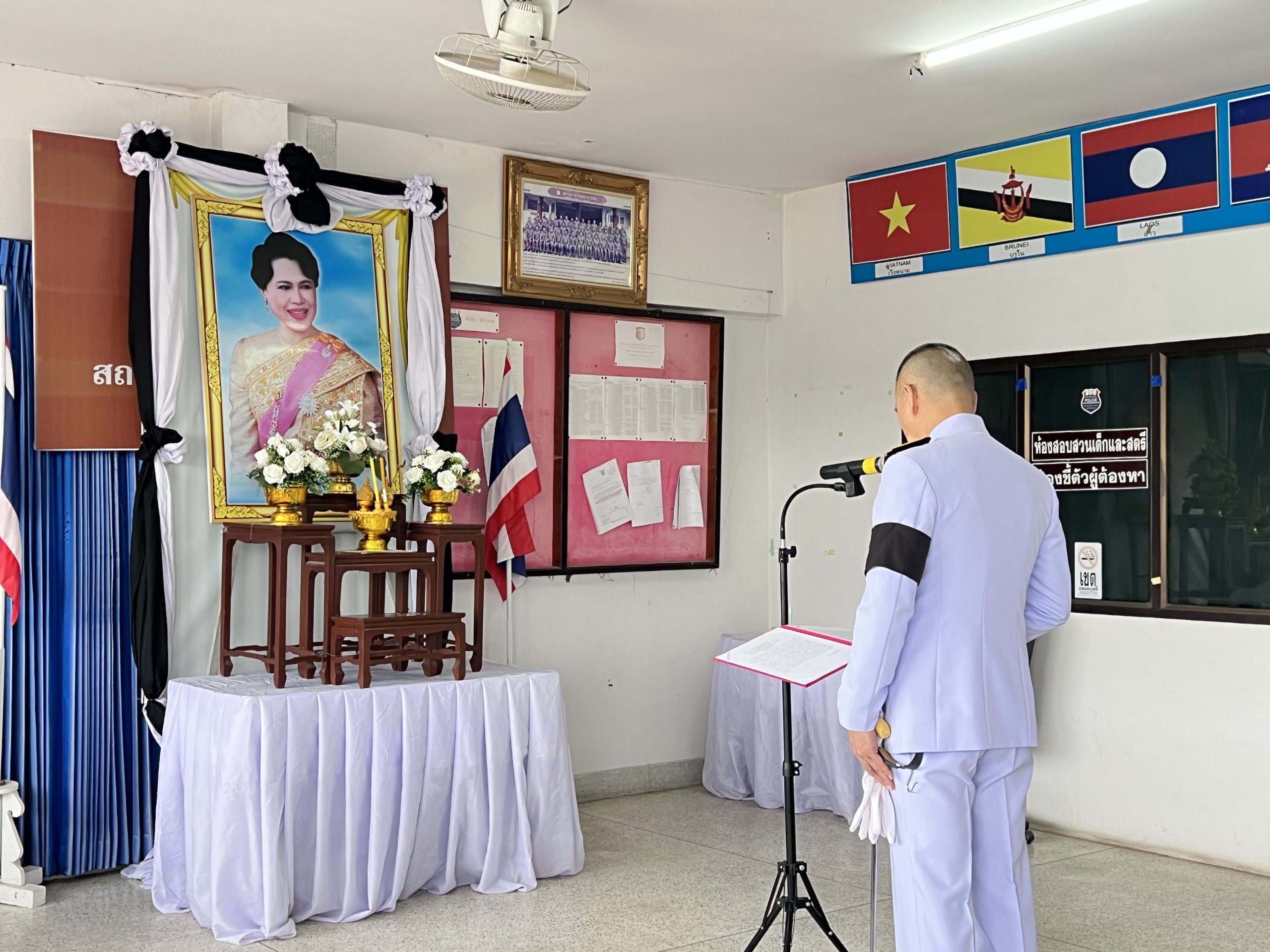 วันที่ 4 พ.ย. 2568 ข้าราชการ สภ.กระนวน จัดพิธีน้อมรำลึกในพระมหากรุณาธิคุณและร่วมถวายความอาลัยแด่สมเด็จพระนางเจ้าสิริกิติ์ พระบรมราชินีนาถ พระบรมราชชนนีพันปีหลวง นำโดย พ.ต.อ.สมยศ ศรีพระคุณ ผกก.สภ.กระนวน ในการแสดงความอาลัยยิ่ง
