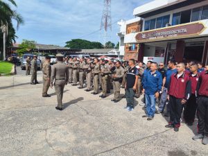 วันที่ 15 พฤศจิกายน 2567 เวลา 08.00 น.ข้าราชการตำรวจเข้าแถวเคารพธงชาติ และ ปฏิญาญและรับการตรวจทรงผมกับ ผกก.สภ.กระนวน