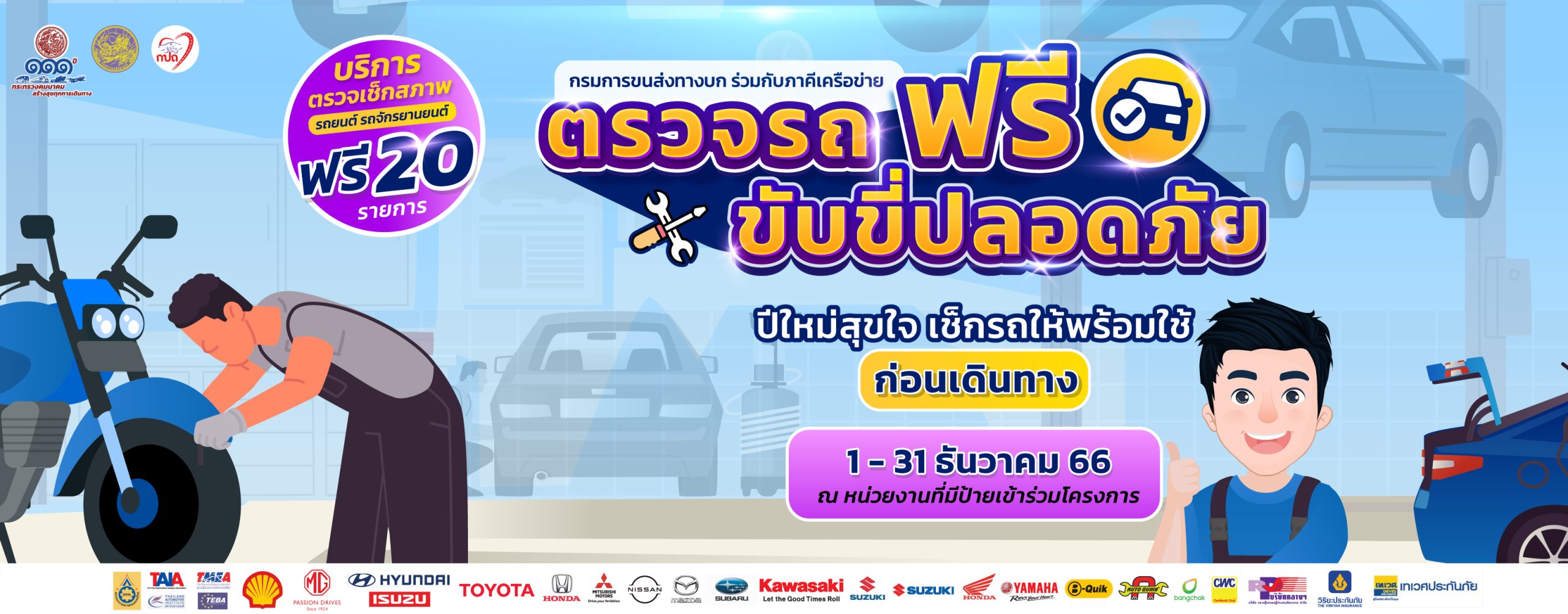 กรมการขนส่งทางบก ร่วมกับหน่วยงานภาครัฐและเอกชน ตรวจรถฟรี ขับขี่ปลอดภัย เช็กรถให้พร้อมใช้ก่อนเดินทาง ตลอดเดือนธันวาคม 2566