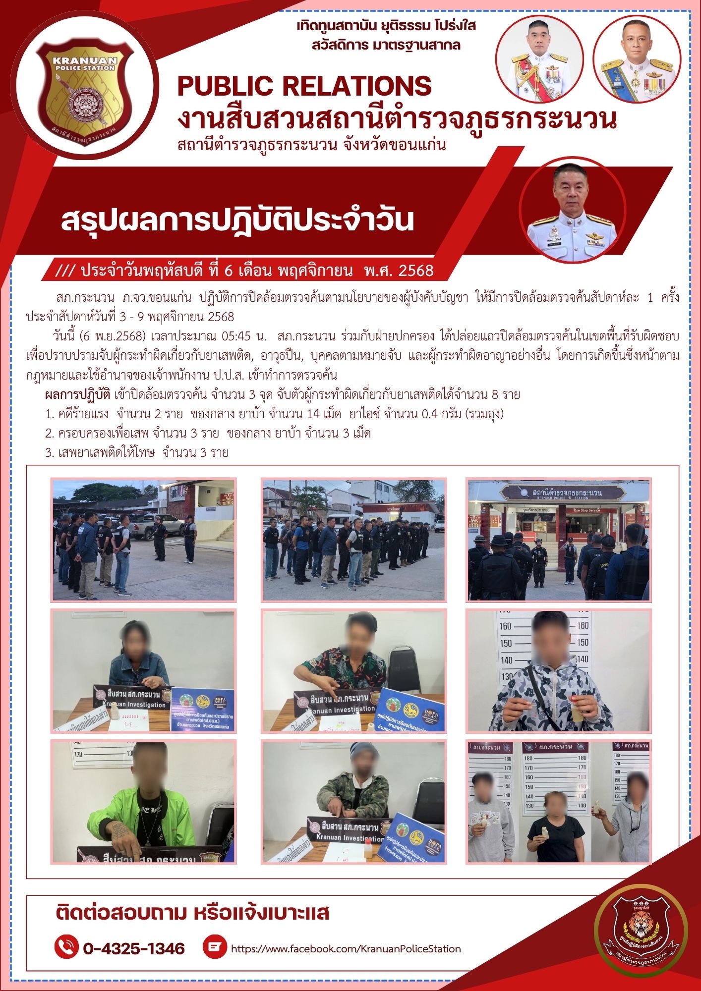 วันนี้ 5 พ.ย. 68 เวลา 16.30 น. พ.ต.อ.สมยศ ศรีพระคุณ ผกก.สภ.กระนวน พ.ต.ท.กันตินันท์ สงครามยศ รอง ผกก.