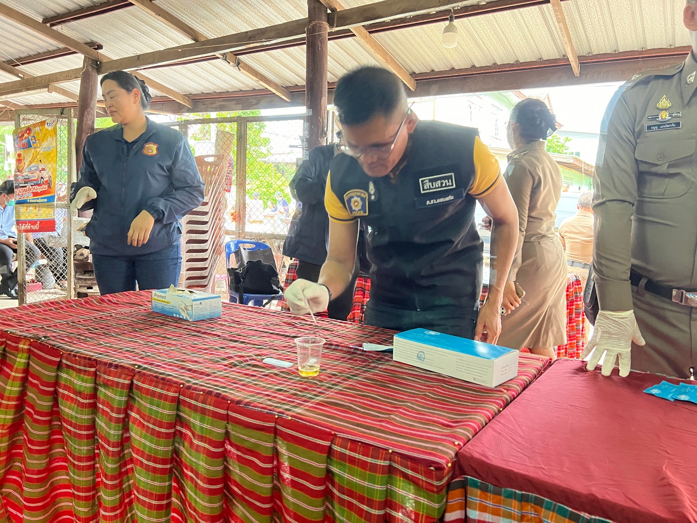 4.การค้นหาผู้เสพ (X-Ray ) ทำการตรวจปัสสาวะผู้นำและประชาชนที่มาร่วมพิธี