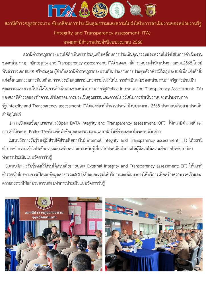 สภ.กระนวน ประกาศนโยบายต่อต้านการรับสินบน (Anti-Bribery Policy)