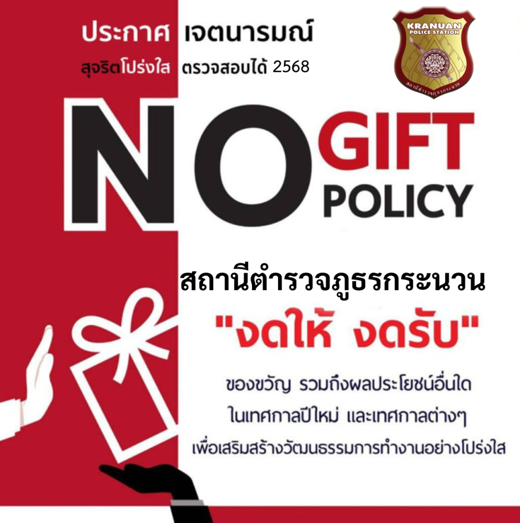 ร่วมประกาศเจตนารมณ์ที่จะไม่รับของขวัญและของกำนัลทุกชนิดจากการปฏิบัติหน้าที่ (No Gift Policy)